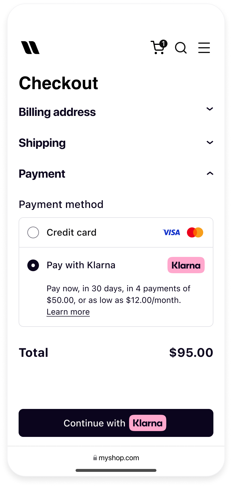 Learn more in the Klarna Mobile SDK Guidelines.